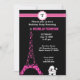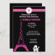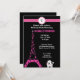 Invitations d'anniversaire Monogrammed rose et noir Eiffel. La décoration est composée de la tour Eiffel et d'un caniche français. Idéal pour Paris Fêtes à thème. Customisez avec les détails de votre fête.