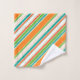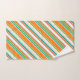 Des rayures diagonales lumineuses orange, vert et bleu turquoise contrastent avec le blanc pour donner à cette serviette de bain trois pièces un motif unique. Les points correspondants donnent plus d'intérêt au motif. La serviette de bain a également une bordure de fond turquoise solide avec votre monogramme sur une bannière blanche ornée. Coloré! Assurez-vous de voir les produits correspondants dans notre magasin. *L'image clipart utilisée dans cette conception est protégée par le droit d'auteur de Encore Software, Inc., qui permet son utilisation à ses concédants de licence. Tous droits réservés.