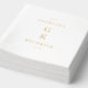 Les élégants serviettes en papier dorées pour mariage comprennent un monogramme vertical moderne et les noms personnalisés de la mariée et du marié. Ces serviettes personnalisées sont parfaites pour une réception de mariage élégante.
