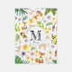 Monogrammed adorable safari pattern raccoons in the jungle white, green baby fleece blanket.