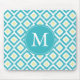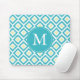 Monogrammed Aqua and Yellow Ikat Pattern Mouse Pad