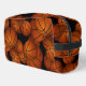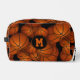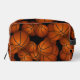 This basketball themed Dopp kit features a random pattern of varied size basketballs turned every which way on a black background - customize with the basketball player's monogram - by katz_d_zynes