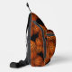 This fun and sporty basketball sling bag features a random pattern of varied size basketballs turned every which way on a black background - customize with the basketball player's monogram - by katz_d_zynes