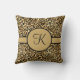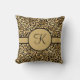 Monogrammed Black and Gold Leopard Print Throw Pillow