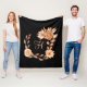 Monogrammed Black and Peach Floral Fleece Blanket