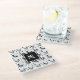 Monogrammed Black and White Cartoon Chickens Glass Coaster