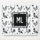 Monogrammed Black and White Cartoon Chickens Mouse Pad