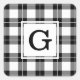 Monogrammed Black and White Plaid Pattern Square Sticker