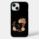 Personalized Monogrammed Black, Brown and Peach Colours Floral iPhone 13 pro case. Also available in other iPhone size cases.
