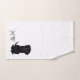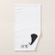 Bath towel set, consisting of a face cloth, hand towel and bath towel with a black Labrador dog design. You can customise this bath towel set with any text of your choice. Should you require any help with customising then contact us through the message link on this page. Labrador dog design bathroom towel set