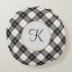 Monogrammed Black White and Gold Plaid Round Pillo Pillow