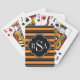 Monogrammed Black White Orange Striped Pattern Playing Cards