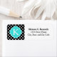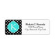 Cool cute geometric trendy black and white polka dots pattern with a bright turquoise blue Moroccan quatrefoil shape nameplate template for your custom monogram initial letter. Chic colourful monogrammed modern address labels.