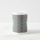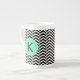 Monogrammed Black, White Sea Foam Chevron Pattern Bone China Mug