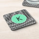 Monogrammed Black, White Sea Foam Chevron Pattern Coaster