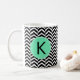 Monogrammed Black, White Sea Foam Chevron Pattern Coffee Mug