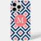 Monogrammed Blue and Coral Diamonds Ikat Pattern Case-Mate iPhone Case