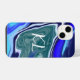 Monogrammed Blue and White Marble Fluid Art iPhone Case