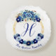 Monogrammed Blue Gold Botanical Garden Wreath Round Pillow
