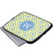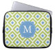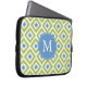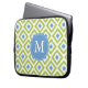 Monogrammed Blue Green Diamond Ikat Pattern Laptop Sleeve