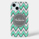 Monogrammed Blue & Grey Chevron Pattern Case-Mate iPhone Case