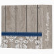 Pretty rustic style mason jar binder with a blue hydrangea flower and a wooden fence and antique damask pattern lace background and stitched look navy blue ribbon. This wedding organizer can be personalized and customized with the name of the cook on the spine of the organizer. Perfect for anyone who loves a country, farmhouse, garden party or barnyard style. Designed by Chrissy H. Studios, LLC. All rights reserved.