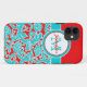 This modern, personalized, turquoise blue, red, and white floral damask pattern Case-Mate Barely There™ iPhone 5 Case has spots for you to add your name, initials, monogram, or other text. If you need help customizing this, please email niteowlstudio@gmail.com.