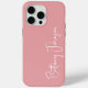 This monogrammed blush pink iphone 15 pro max case is trendy yet and classic. It features your name in a fabulous modern script font in white. It's simple and minimal, stylish and chic.