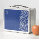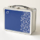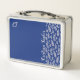 monogrammed Blush pink Leaf pattern on Blue Metal Lunch Box