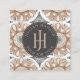An earthy boho style monogrammed logo geometric pattern background business card design with muted brown and charcoal grey abstract shapes. A dynamic decorative typographic monogram.