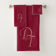 Monogrammed - burgundy colour bath towel set Easily personalize it now with the letters of your choice . This colour is a dark red with a purple tint ( rgb 800020 ) .