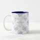 Monogrammed Classic Blue Flowers Floral Pattern Two-Tone Coffee Mug