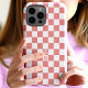 This chic design features a bold coral and white chequerboard pattern, perfect for those who love stylish and modern aesthetics. The clean lines and vibrant colour create a striking visual effect, making it a standout accessory. A personalized monogram adds a unique touch, making this design both fashionable and functional. Ideal for adding a pop of colour and contemporary style to your collection.