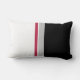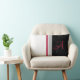 This personalized lumbar pillow features bold vertical stripes in white, crimson red, grey, and black colours with a script monogram on the right side in matching red shade. Colour customization available - click Personalize and Customize further to edit. Don't forget to change the backside!