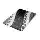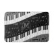 Contemporary curved piano keys and grey and black musical notes with contrasting black and grey panels