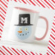 Monogrammed cute watercolor snowman face smiling mug for Christmas gift.