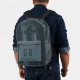 The design is a fun free-spirited, abstract piece featuring shades of greyish cadet, marble blue colours, along with distressed typography for monogram personalization. Be it for school, travel, or backpacking, this is a cool backpack to carry around!