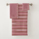 This bath towel set is created in shades of light & dark pink abstract stripes on a dusty rose background and includes optional monogram on the hand towel and wash cloth. Use the Personalize option to change the letters to your initials. Use the Customize option if you need to tweak the positioning of the letters or want to change the font. I've used a light pink for the font color for a subdued look but you can change the color to something else (like white or an even darker pink) for a bolder look.