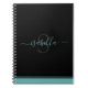 Simple modern script personalized notebook for your journalling. The elegant teal stylish script on black matches the line design in colour but offsets it in style, creating a fun twist to the minimalist look.