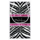 Pretty black and pink sparkle glitter-look background and faux jewellery (No real glitter or jewels - so it's safe) with black and white zebra wild animal pattern print and custom name or text and an adorable chic cute fashion statement.
