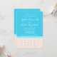 Invite family and friends to your upcoming beach theme wedding with these chic colorful 5x7 invitations. All text is simple to customize or delete. Pastel coral and light turquoise blue design features bright white typography, cute monogrammed flip flops on an abstract modern minimalist beach, and customizable quote on back that reads "by the sea i pledge my love to thee." The hand written style script calligraphy resembles sky writing above the ocean. This stylish tropical wedding invitation is an elegant way to request guests to attend your special day celebration in paradise.
