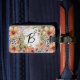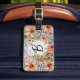 A sassy, personalized luggage tag decorated with flowers and a touch of leopard print.