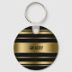 Monogrammed Gold & Black Stripes Pattern Keychain