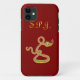 Monogrammed Gold-effect Snake on Red Background Case-Mate iPhone Case