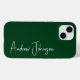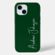 This monogrammed green iphone 15 case is trendy yet and classic. It features your name in a fabulous modern script font in white. It's simple and minimal and professional.