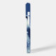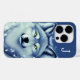 Wolf lovers iPhone case done in blue, with ai cartoon graphics of a grey and white wolf's portrait. Personalize the one letter monogram to suit your needs.