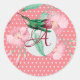 Monogrammed Hummingbird Floral Pink Mint Decor Classic Round Sticker