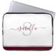Simple modern script personalized laptop sleeve for your laptop. The elegant burgundy stylish script matches the line design in colour but offsets it in style, creating a fun twist to the minimalist look.