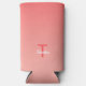 Stylish can cooler design features a modern template for personalized name and single letter initial using a casual script for the name and a simple, neat font for the initial. The name is in white and is placed over the initial. The initial is in strawberry red and coordinates with the red gradient background.