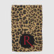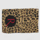 Stylish lady's golf towel done in a brown, black, and tan jaguar print. A large red one letter monogram is ready to personalize. Great gift idea. Matching golf accessories are available.